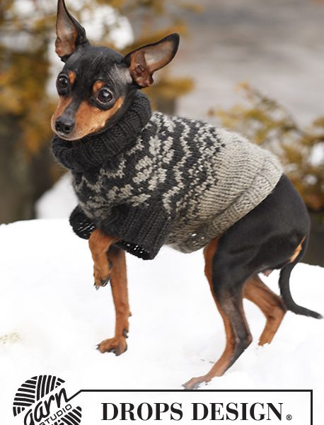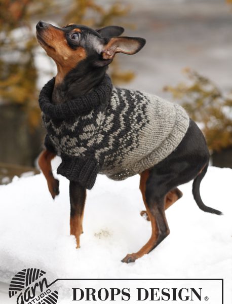 Strikket genser til hund i DROPS Karisma. Med norsk mønster. Størrelse XS-M.
