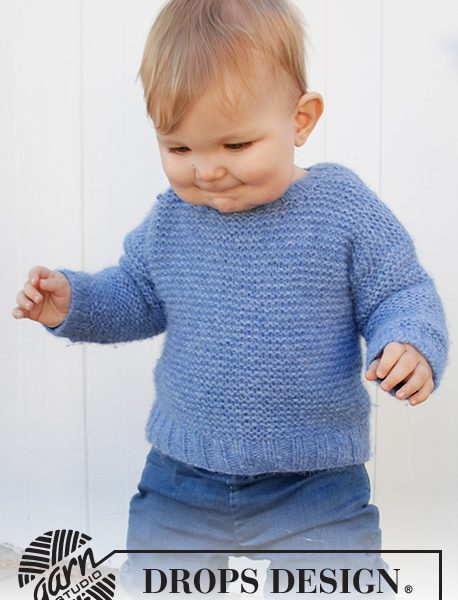 Strikket genser til baby og barn i DROPS Air. Arbeidet strikkes ovenfra og ned i riller. Størrelse 6 mnd – 8 år.