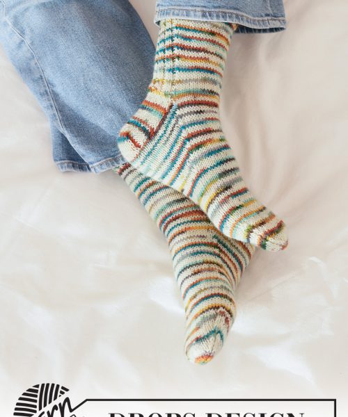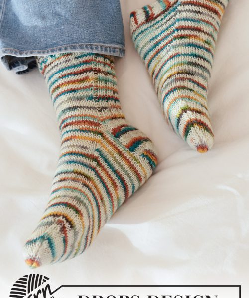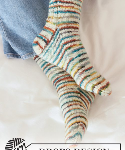 Strikkede sokker i DROPS Fabel. Arbeidet strikkes ovenfra og ned. Størrelse 35 – 43.
