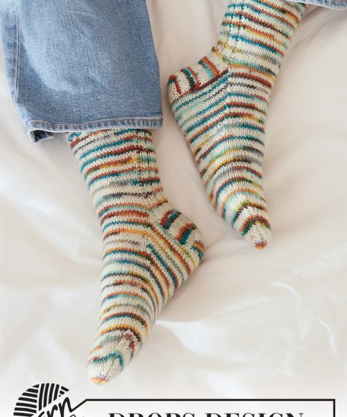 Strikkede sokker i DROPS Fabel. Arbeidet strikkes ovenfra og ned. Størrelse 35 – 43.