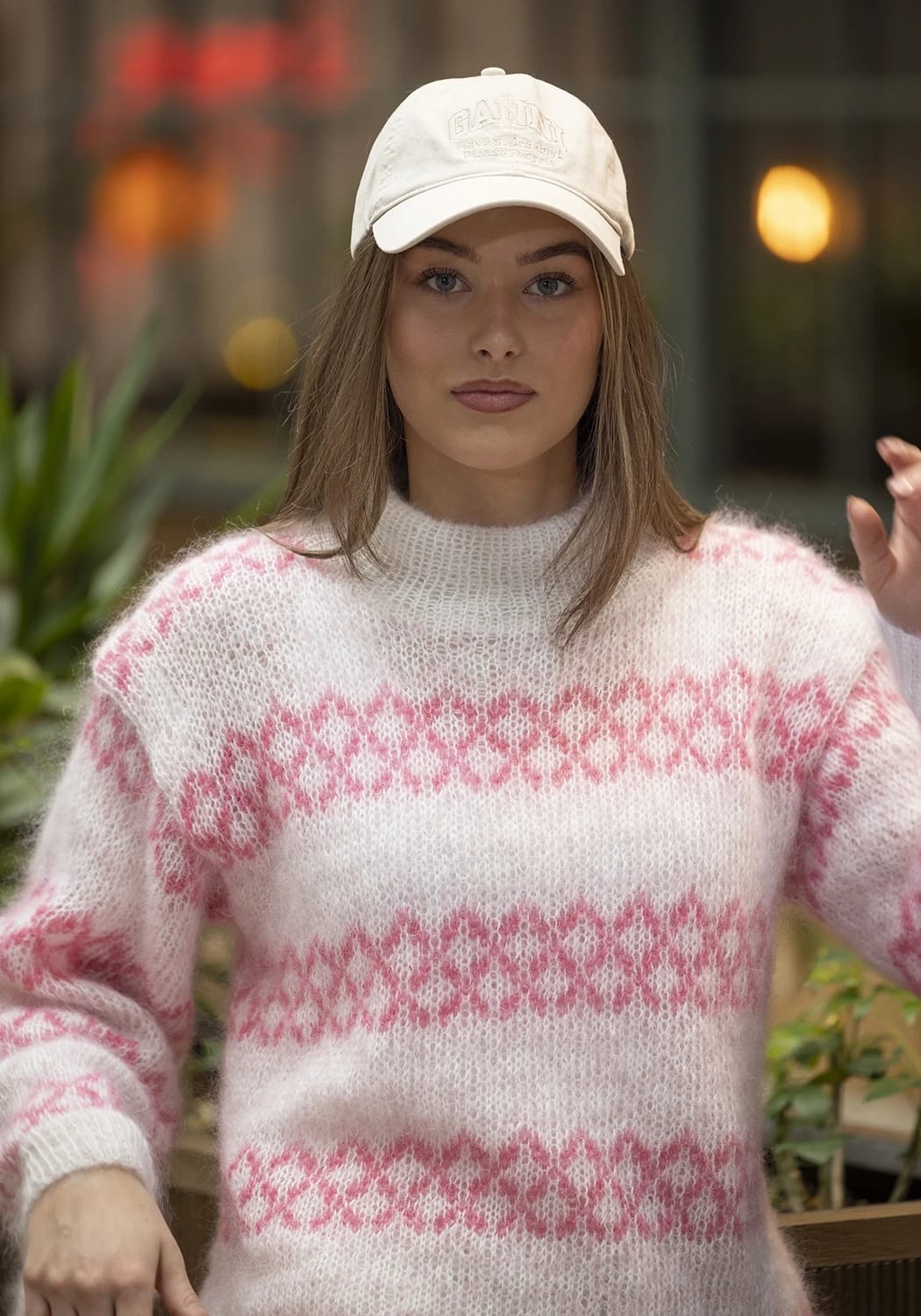 Strikkefasthet: 16 m glattstrikk i bredden med 2 tråder Kid Cotton på pinne nr 5 eller 6 måler ca 10 cm.