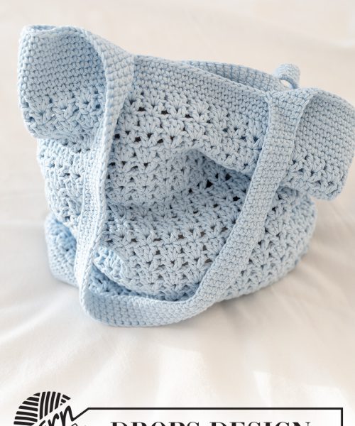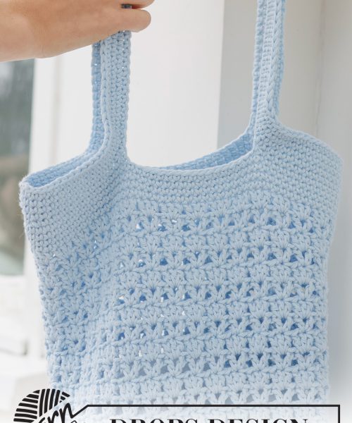 Heklet veske / nett i DROPS Paris. Arbeidet hekles rundt nedenfra og opp med hullmønster