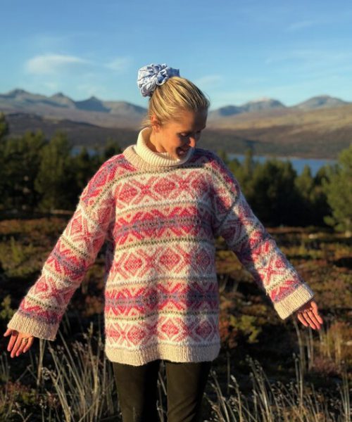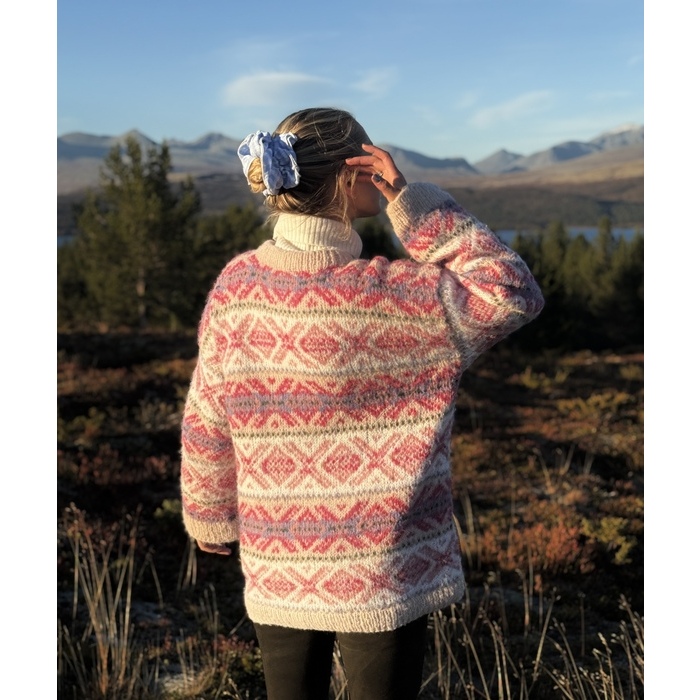 Strikkepakke CORTINA genser i latte Faerytale fra Ingrid Raadim og House of Yarn.