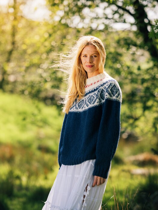 Strikkepakke CORTINA genser i marine Faerytale fra Du store Alpakka.
