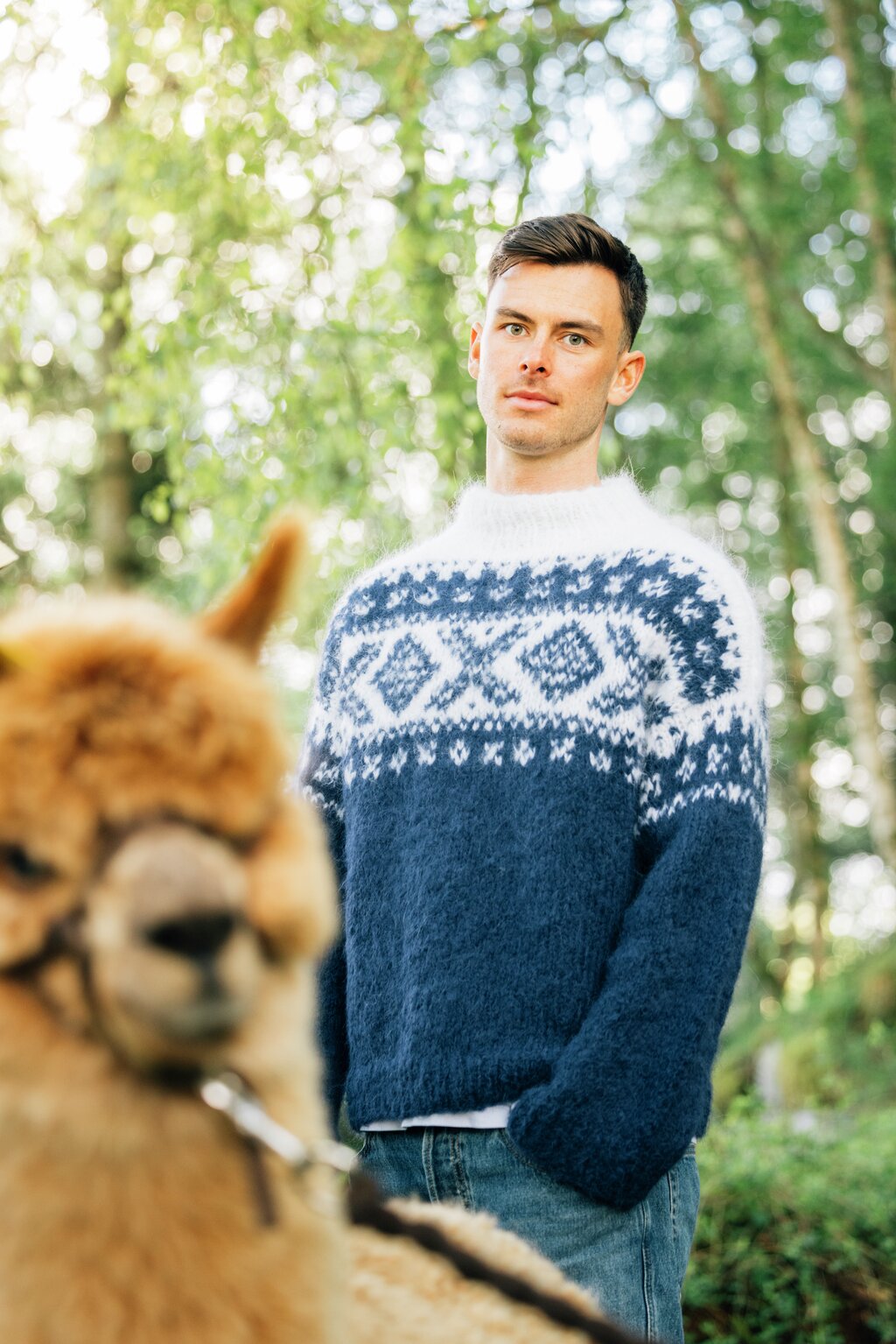 Strikkepakke CORTINA herregenser i navy blue Fnugg in Florence fra Bæstmor.