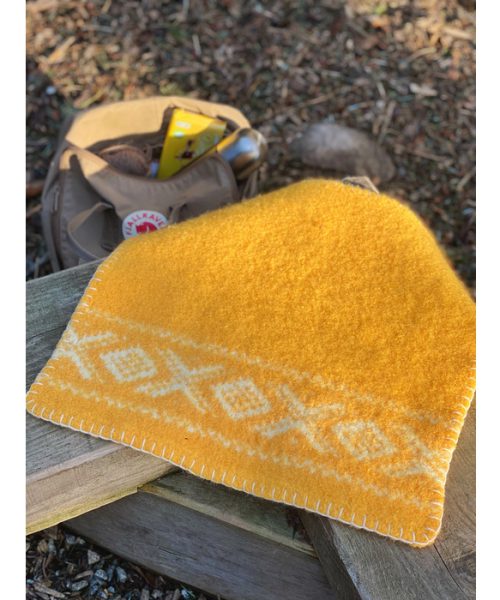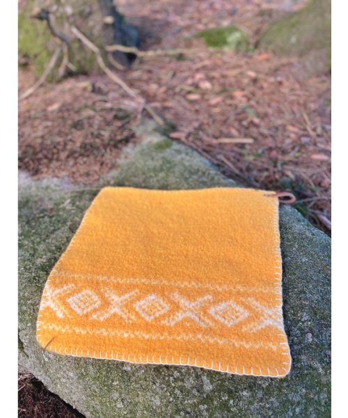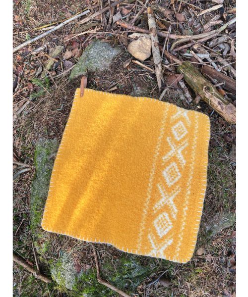 CORTINA sitteunderlag i solgul Natural Lanolin Wool. Tovet sitteunderlag med Cortina mønster.