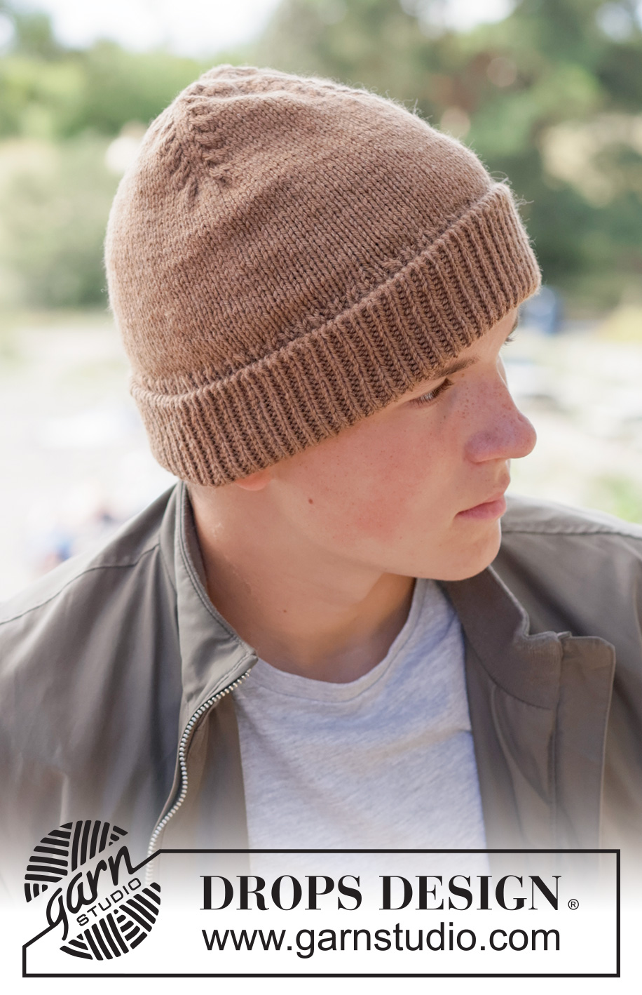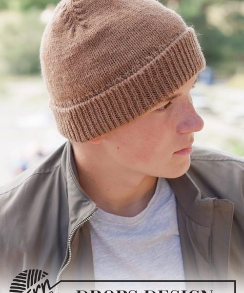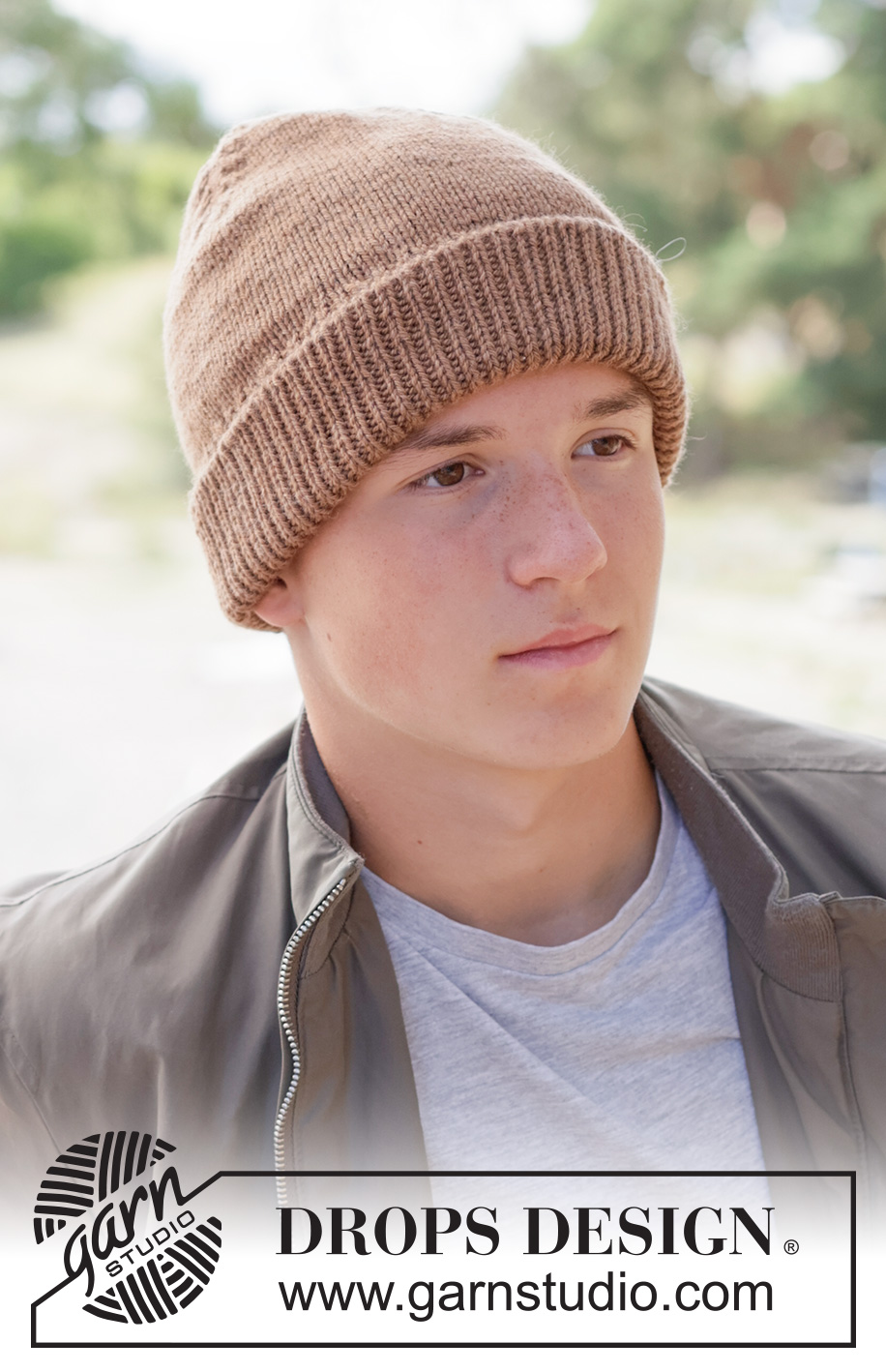 Strikket lue til herre i DROPS Daisy eller DROPS Karisma. Arbeidet strikkes nedenfra og opp glattstrikk, vrangbord og fletter.