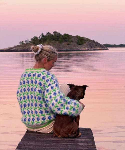 ELLINOR genser i royal blue Fnugg in Florence. Mønstret genser med isydde ermer og rund hals.