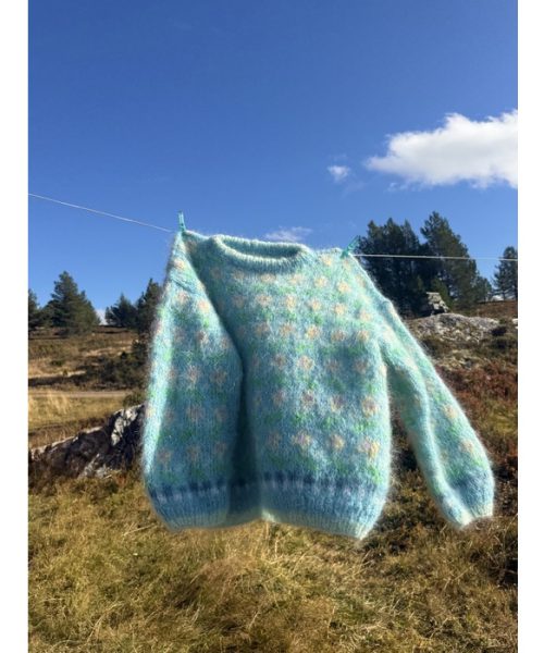 Strikkepakke ELLINOR genser i caribbean blue Påfugl in Paris fra Ingrid Raadim x House of Yarn.