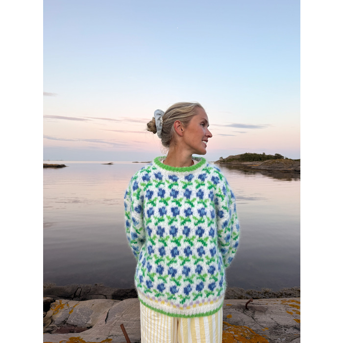 Strikkepakke ELLINOR genser i kongeblå Soft fra Ingrid Raadim x House of Yarn.