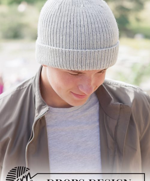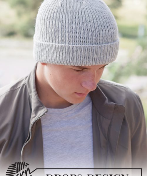 Strikket lue til herre i DROPS Merino Extra Fine. Arbeidet strikkes nedenfra og opp i vrangbord.