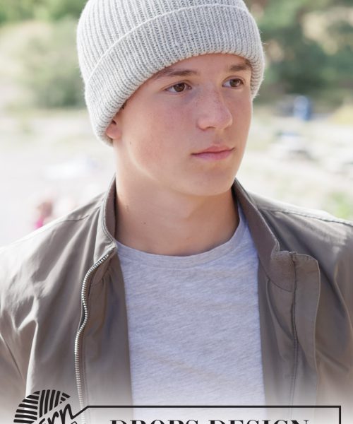 Strikket lue til herre i DROPS Merino Extra Fine. Arbeidet strikkes nedenfra og opp i vrangbord.