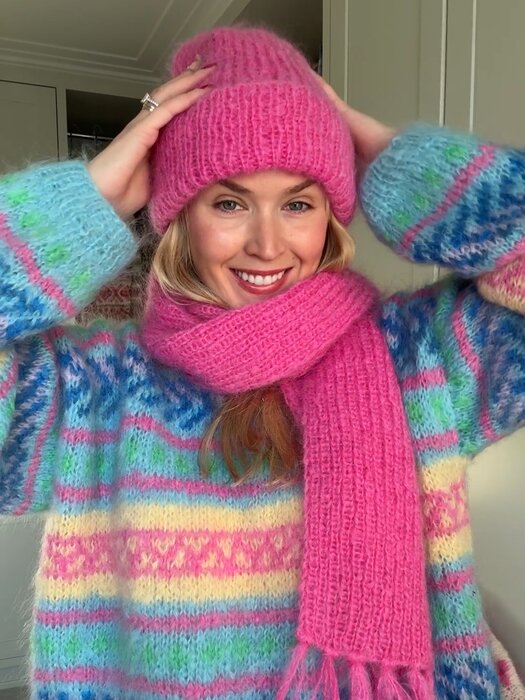 Strikkepakke FROST lue i fuchsia Påfugl in Paris fra Ingrid Raadim og House of Yarn.