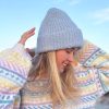 FROST lue i sky blue Fnugg in Florence. Enkel lue i vrangbordstrikk.