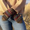 GAIA votter i skyggegrå striper Eventyrlig Garn. Enkle glattstrikkete votter.