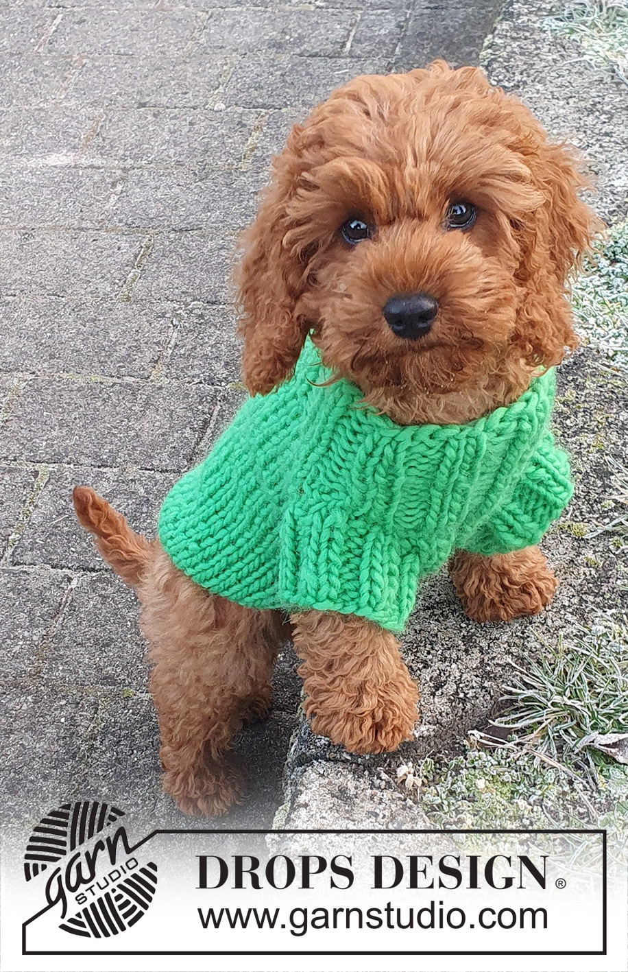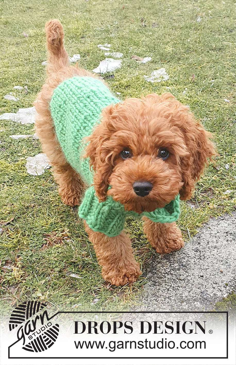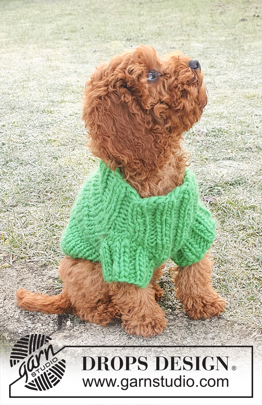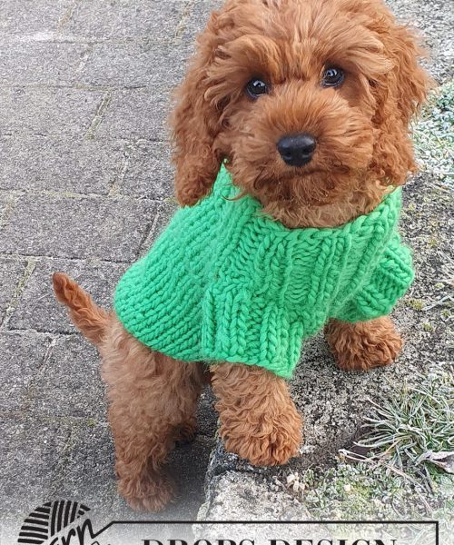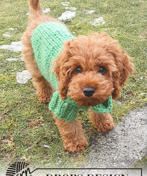 Strikket hundegenser / genser til hund i DROPS Snow. Arbeidet strikkes fra halsen til halen ovenfra og ned. Størrelse XS – L.