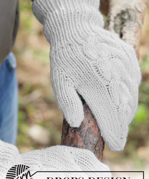 Strikkede votter med fletter til herre i DROPS Merino Extra Fine. Arbeidet strikkes nedenfra og opp, fra håndledd til fingertupp.