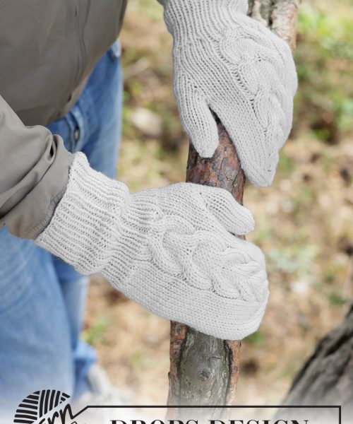 Strikkede votter med fletter til herre i DROPS Merino Extra Fine. Arbeidet strikkes nedenfra og opp, fra håndledd til fingertupp.