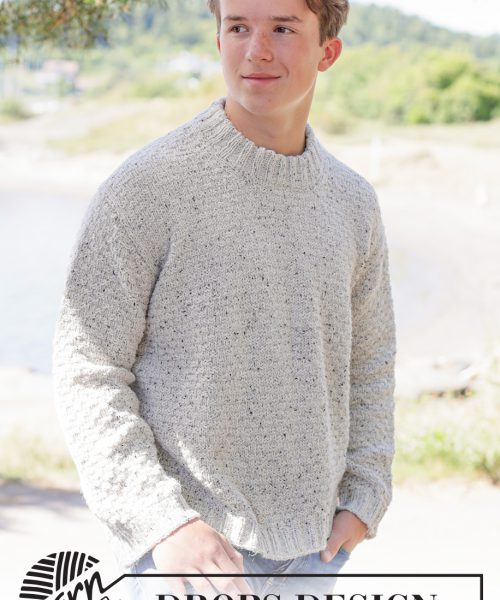 Strikket genser til herre i DROPS Soft Tweed. Arbeidet strikkes ovenfra og ned med skrå skulder / europeisk skulder, relieffmønster og dobbel halskant. Størrelse S – XXXL.