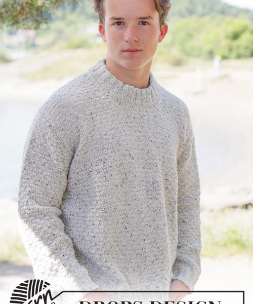 Strikket genser til herre i DROPS Soft Tweed. Arbeidet strikkes ovenfra og ned med skrå skulder / europeisk skulder, relieffmønster og dobbel halskant. Størrelse S – XXXL.