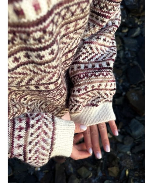 | Teknikk | Isydde ermer, Mønster, Rund hals, Vrangbord |