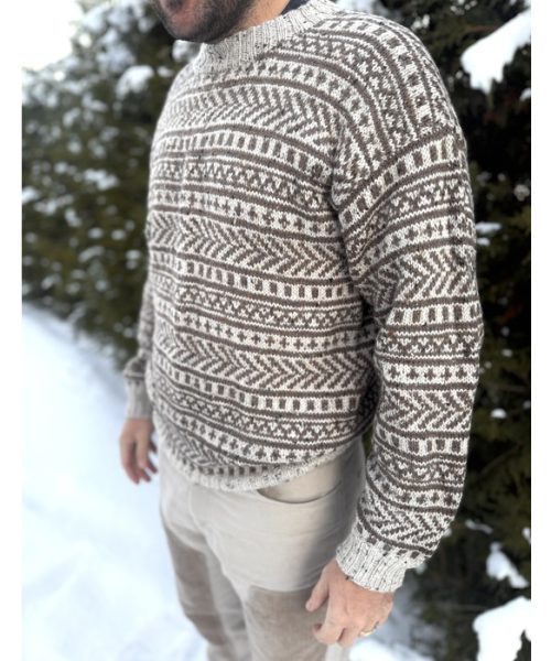 Strikkepakke HANAMI genser i brun Sterk Tweed fra Ingrid Raadim og House of Yarn.