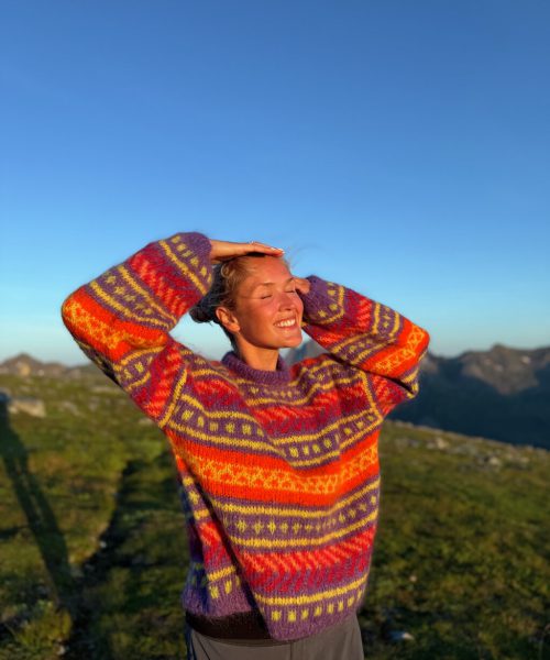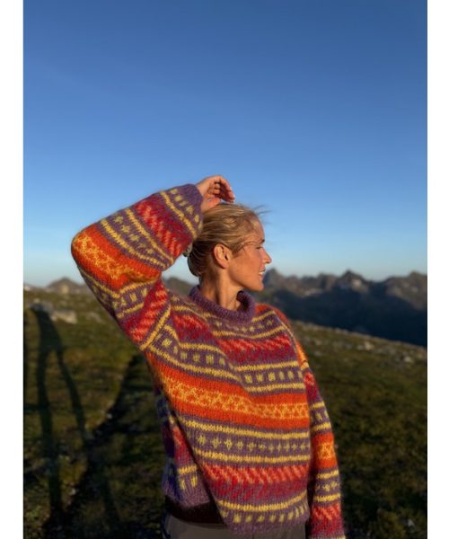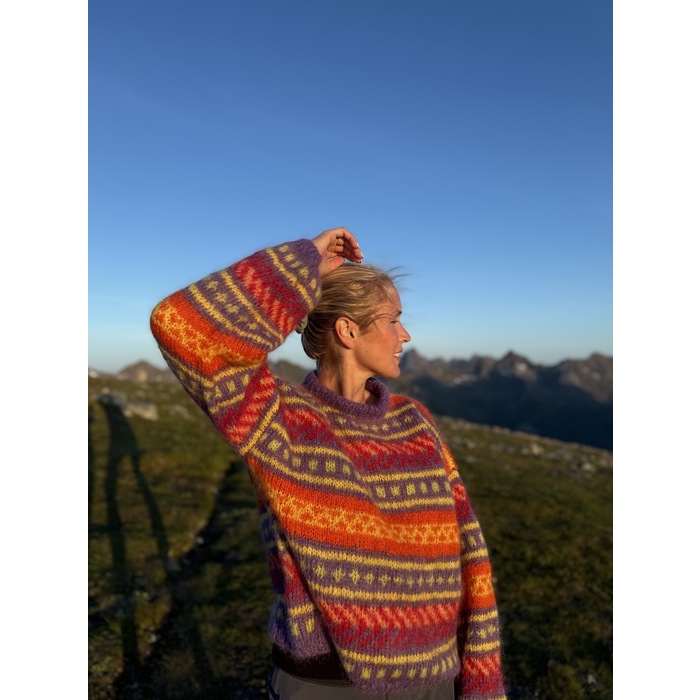 Strikkepakke HANAMI genser, lavendel, gul, rød, oransje og grønn.
