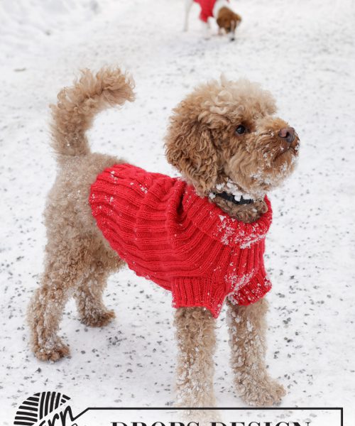 Strikket hundegenser / genser til hund i DROPS Karisma eller DROPS Fiesta. Arbeidet strikkes fra halsen til halen med vrangbord og fletter. Størrelse XS – M.