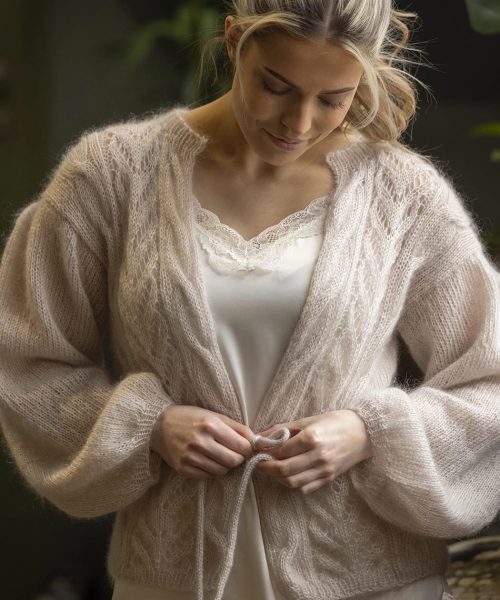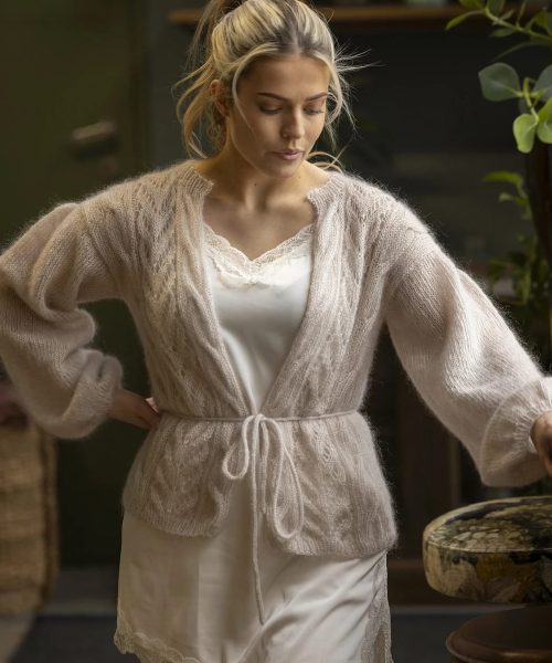 Hele plagget strikkes med 2 tråder Kid Cotton.