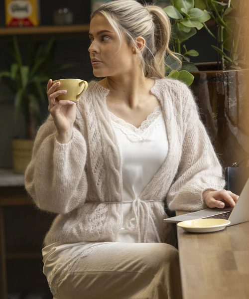 Hele plagget strikkes med 2 tråder Kid Cotton.