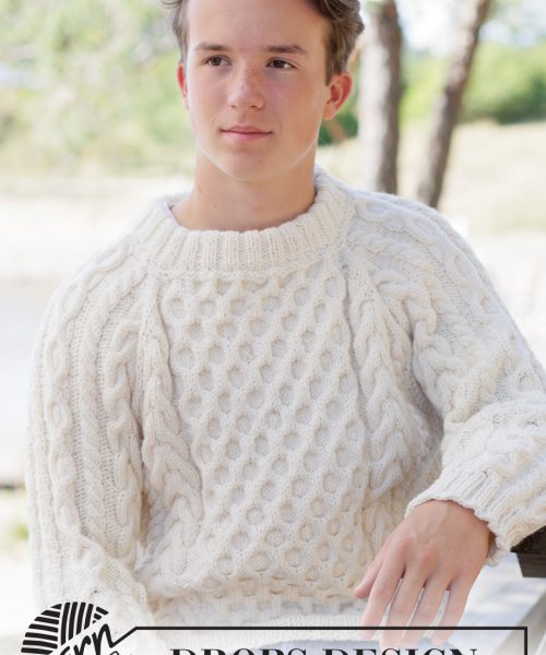 Strikket genser i DROPS Alaska eller DROPS Big Merino. Arbeidet strikkes ovenfra og ned med raglan, fletter, relieffmønster og dobbel halskant. Størrelse XS – XXXL.