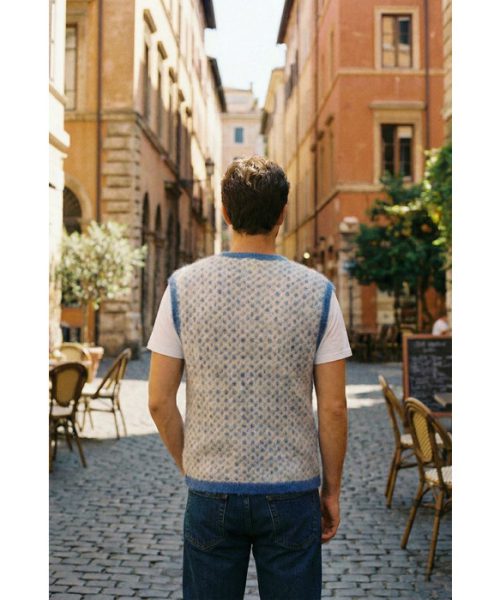 En tidløs vest med fine mønsterdetaljer som varmer godt, perfekt til lag-på-lag eller som et stilfullt tillegg i garderoben.