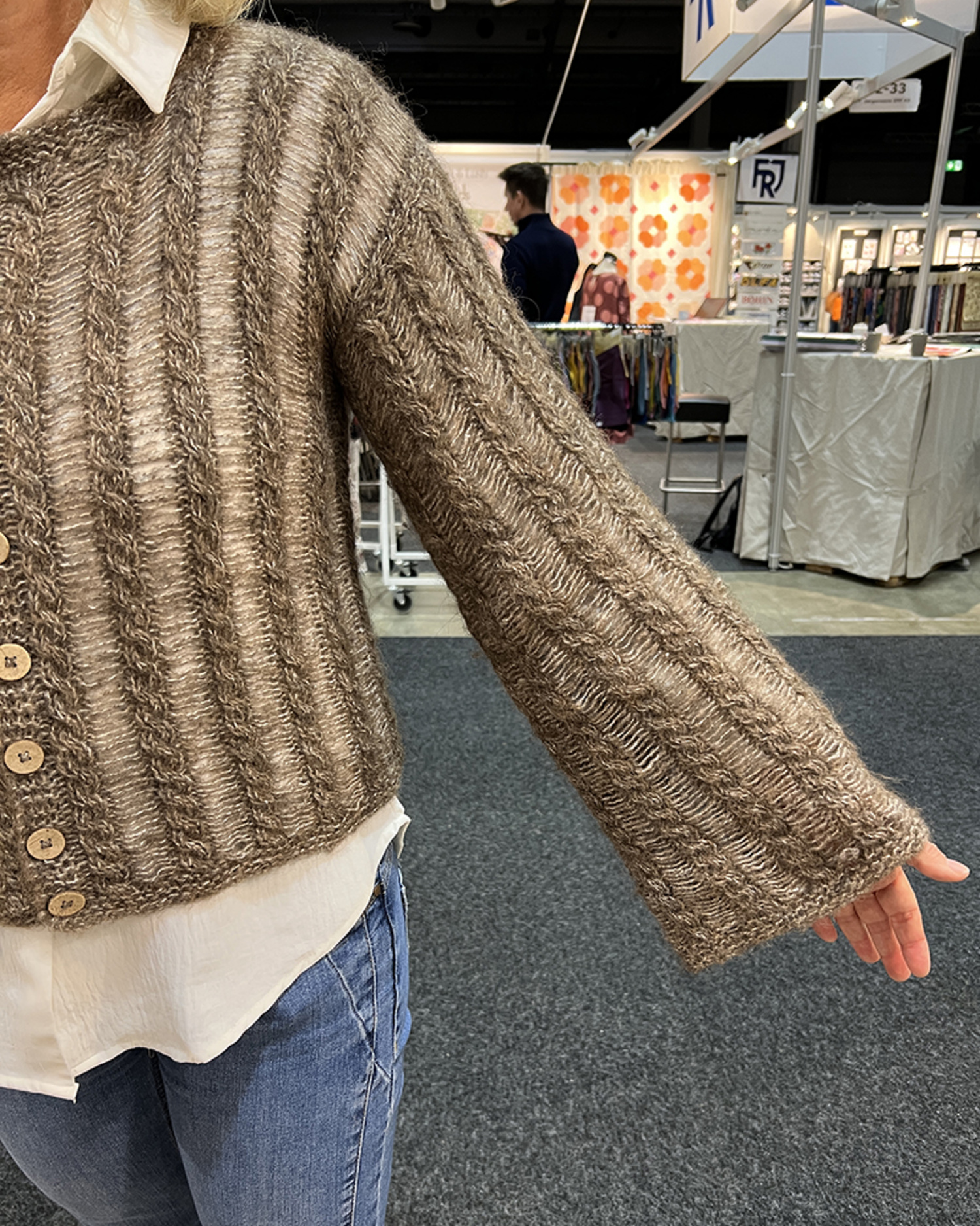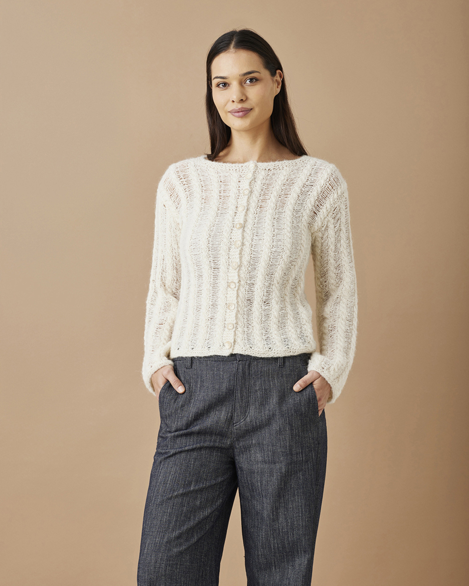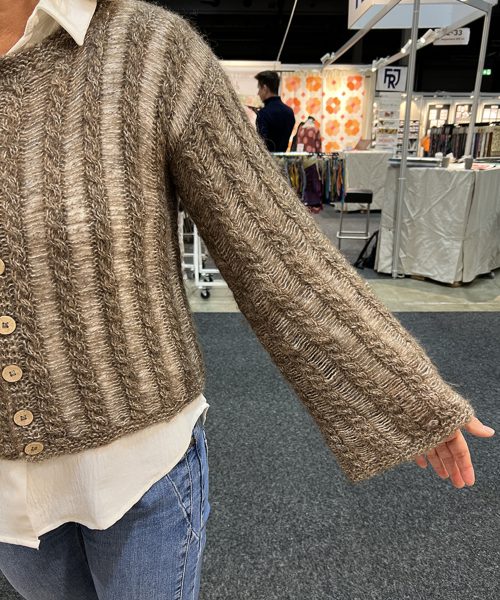 | Beskrivelse: | For- og bakstykket strikkes frem og tilbake, og ermene strikkes rundt. Ved avfelling slippes den midterste vrangmasken mellom snoningene. Det er denne masken som senere trekkes. |