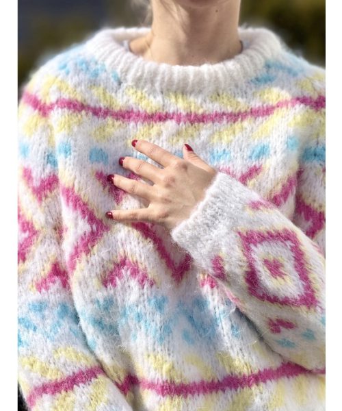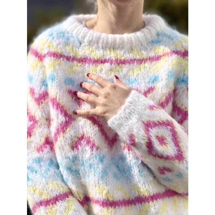 KVIKNE genser i white Fnugg in Florence. Mønstret genser med raglan og rund hals.