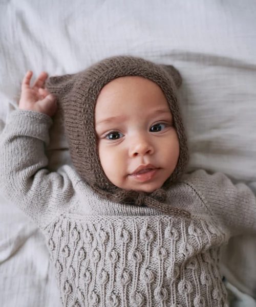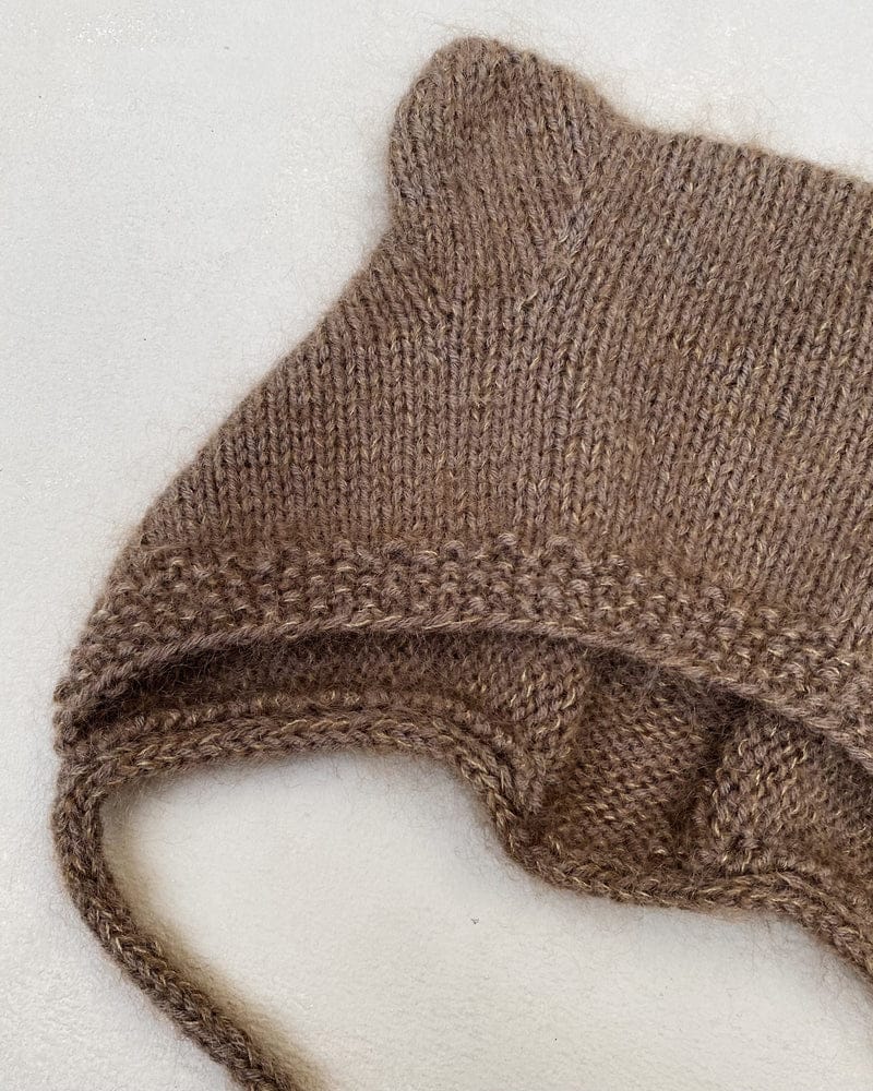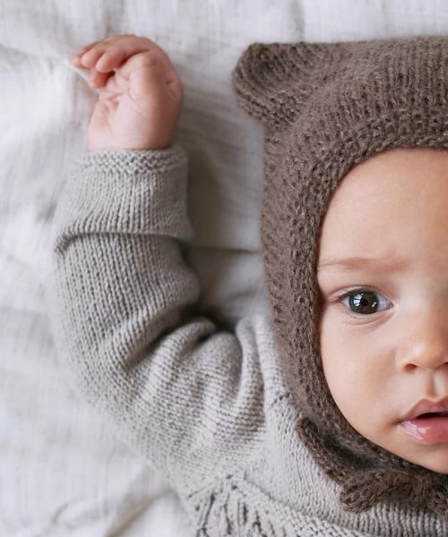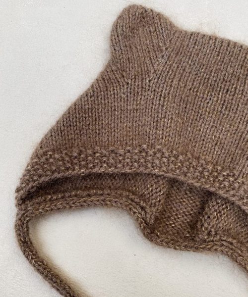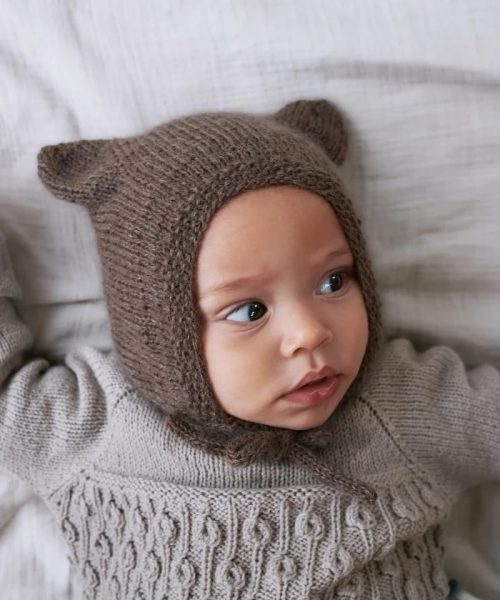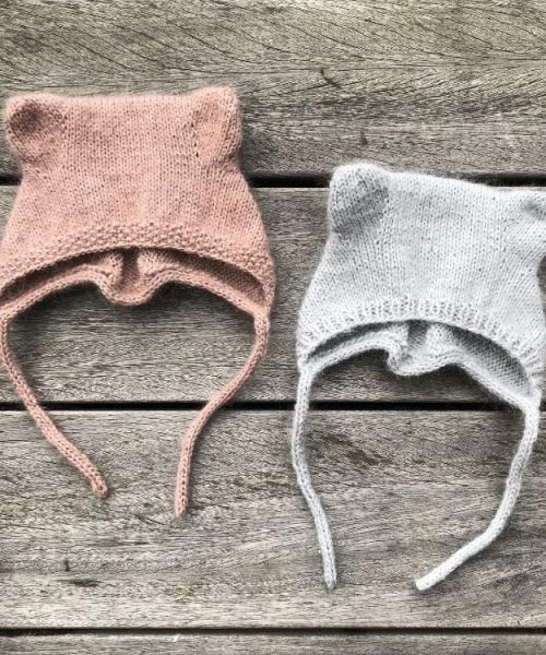 Lillebjørnhue er en hendig liten lue i kysefasong med små bjørneører. Luen strikkes frem og tilbake i glatt med en perlestrikkant eller ribbkant.