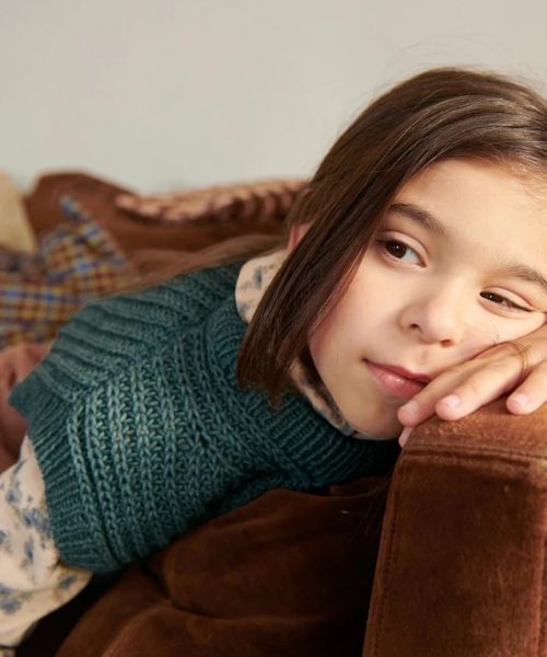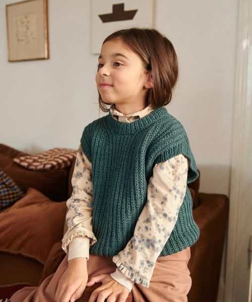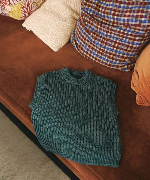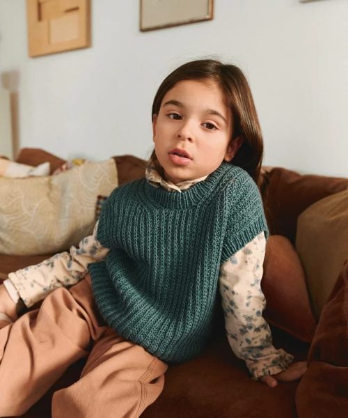 Loui Slipover Junior er et anvendelig plagg som passer både alene og over skjorte eller genser. Slipoveren strikkes ovenfra og ned i halvpatent og strikkes i Duo – en slitesterk og behagelig kvalitet for barn.