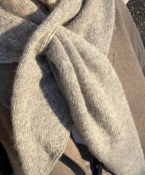 For å få fram den lodne overflaten på ulla og dempe rullingen må sjalet toves lett. Skyll det godt i varmt vann og gnikk stoffet mellom hendene og mot seg selv.