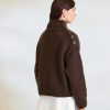 Genser strikket ovenfra og ned med én tråd Peer Gynt kombinert med Tynn Silk Mohair. Dekorativ knappedetalj langs skulder og hals, glattstrikkede ermer og vrangbordavslutning.
