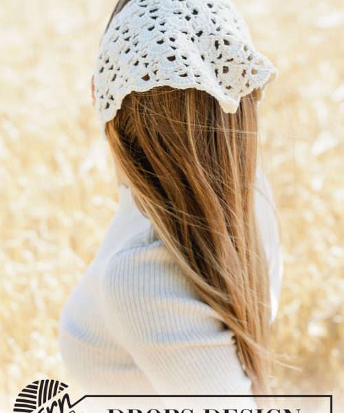 Heklet skaut / bandana i DROPS Cotton Merino. Arbeidet hekles frem og tilbake med viftemønster.