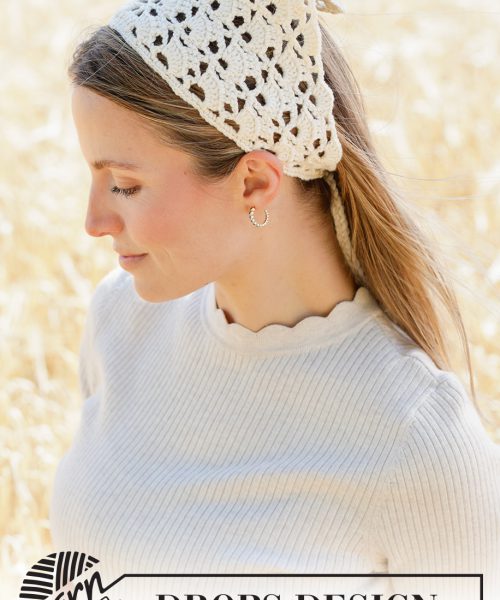Heklet skaut / bandana i DROPS Cotton Merino. Arbeidet hekles frem og tilbake med viftemønster.