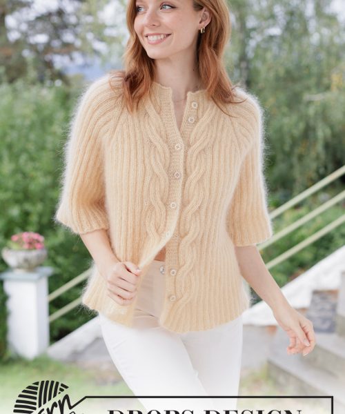 Strikket jakke i 2 tråder DROPS Kid-Silk. Arbeidet strikkes ovenfra og ned med raglan, fletter og vrangbord. Størrelse XS – XXXL.