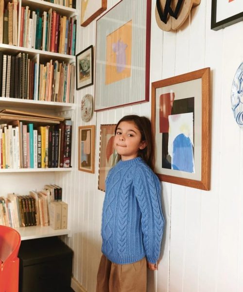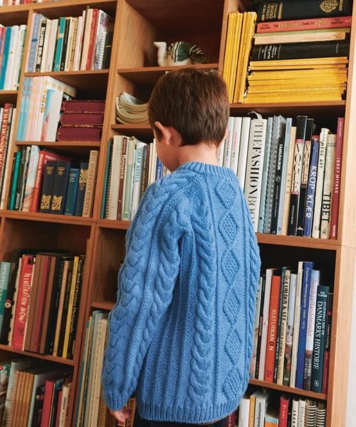 Klassisk barnegenser med fletter. Nilo Sweater Junior strikkes ovenfra og ned med raglan i Double Sunday.
