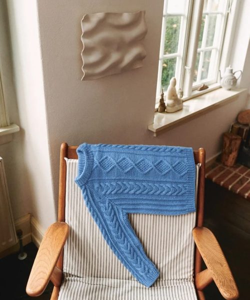 Oppskrift på Nilo Sweater i Merinoull medfølger.