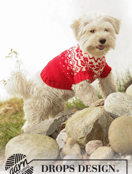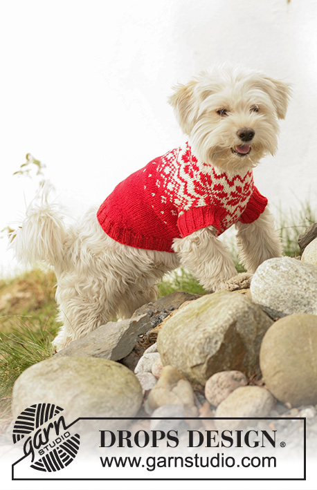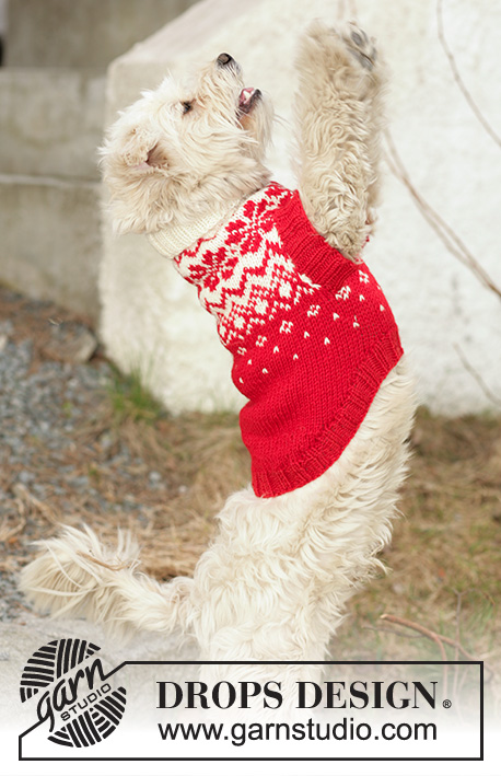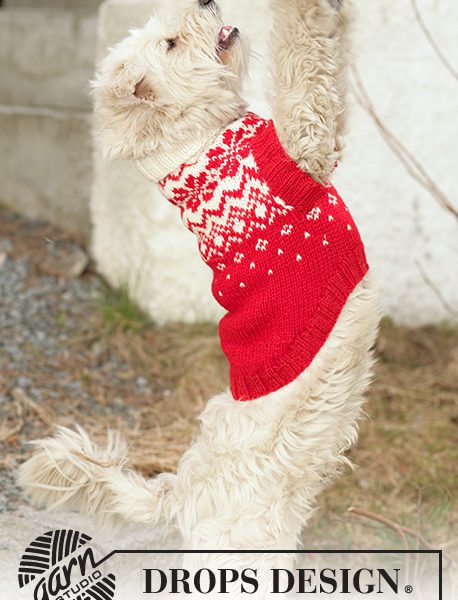Strikket DROPS hundegenser / julegenser i ”Karisma” med norsk mønster.
