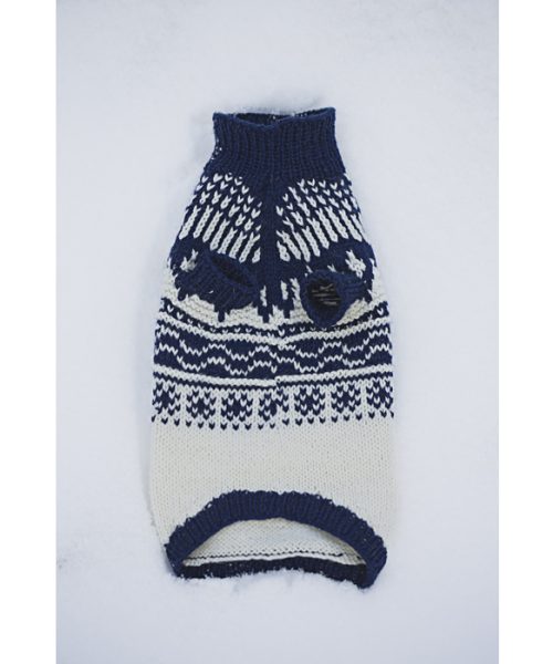 NORGESGENSEREN hundegenser i hvit og blå farge. Hold kjæledyret ditt varmt i vinterkulden med denne flotte hundegenseren. Strikkes i Lanolin Wool som er et Woolmark-sertifisert ullgarn som bevarer ullas egenskaper og gir god elastisitet, varme- og isoleringsevne.