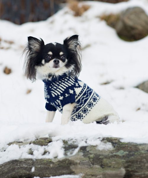 NORGESGENSEREN hundegenser i hvit og blå farge. Hold kjæledyret ditt varmt i vinterkulden med denne flotte hundegenseren. Strikkes i Lanolin Wool som er et Woolmark-sertifisert ullgarn som bevarer ullas egenskaper og gir god elastisitet, varme- og isoleringsevne.