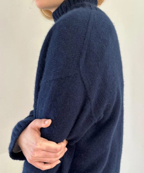 Note Sweater strikkes ovenfra og ned med European shoulder-konstruksjon. Den strikkes på pinne 3 mm, og resultatet er en skikkelig basisgenser i en behagelig tykkelse. Strikkes i Cashmere.