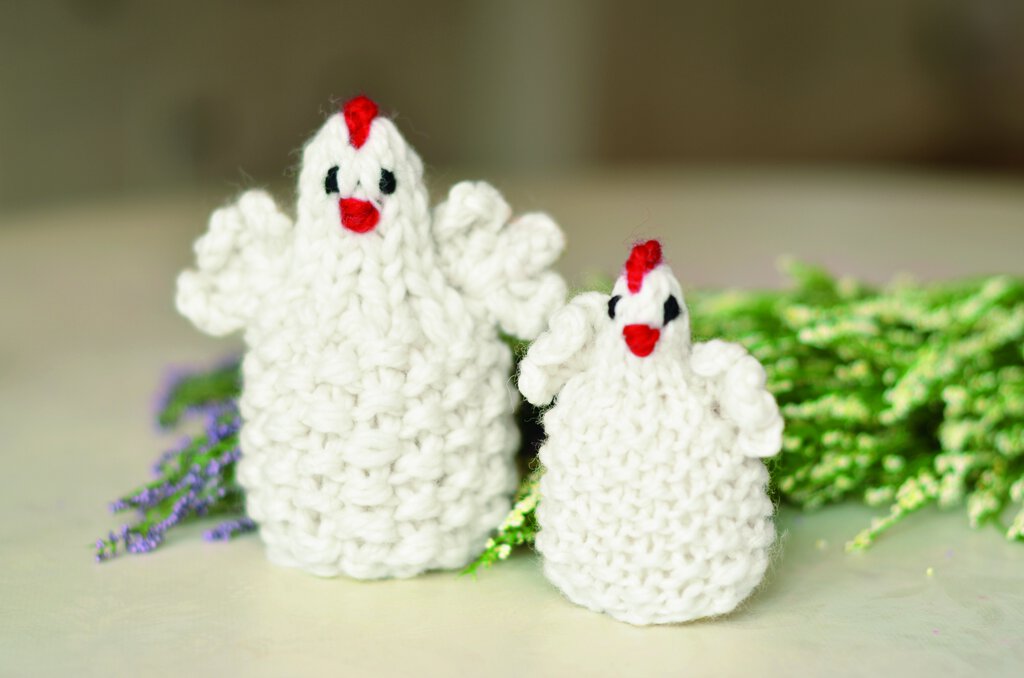 PÅSKEHØNER 1×13 og 1×19 cm Oppskrift fra Gjestal Garn