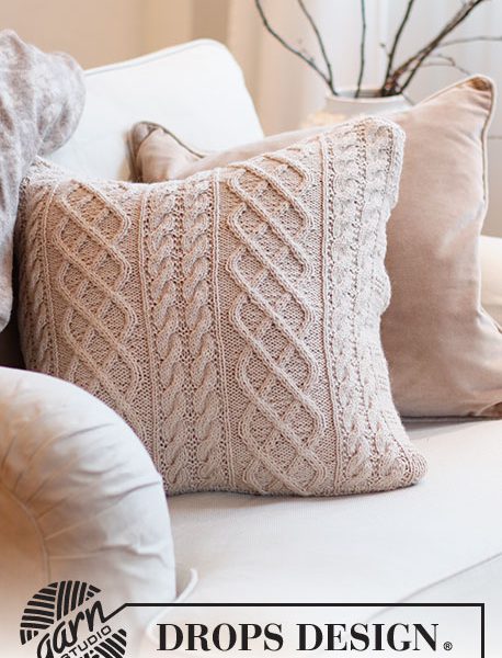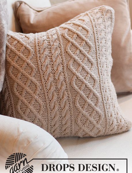 Strikket pute med fletter i DROPS Lima.