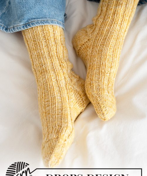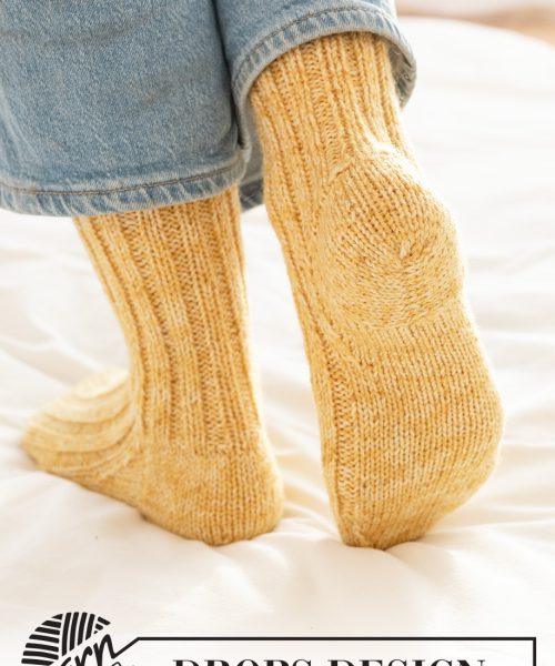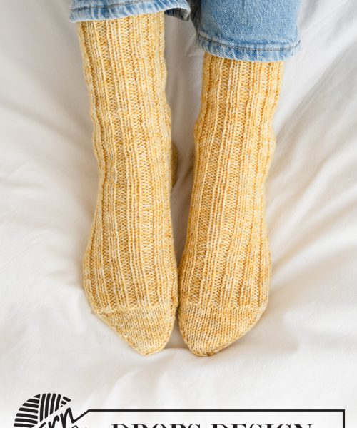 Strikkede sokker i DROPS Fiesta. Arbeidet strikkes ovenfra og ned med bestemorhæl. Størrelse 35 – 43.